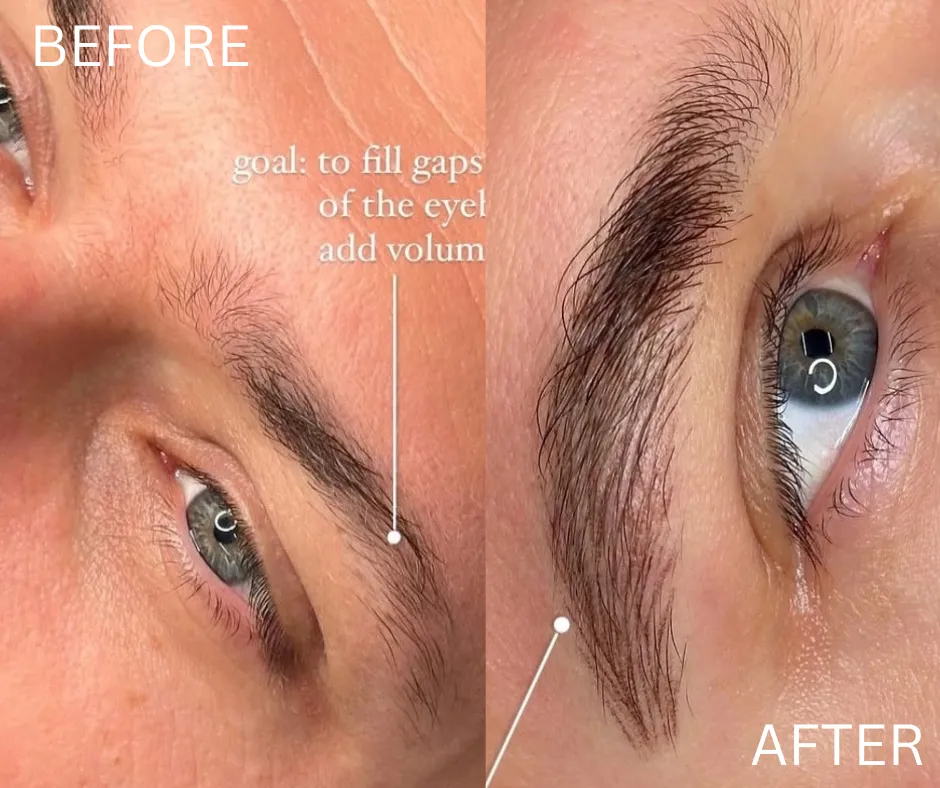 Think of it as the glow-up your brows deserve. First, we sit down for a one-on-one consultation where we map out your perfect shape based on your face and natural brow line. Then, using tiny hair-like strokes and semi-permanent pigment, we fill in sparse areas and create fuller, more defined brows that actually stay put. No smudging, no fuss—just gorgeous, natural-looking brows tailored just for you.